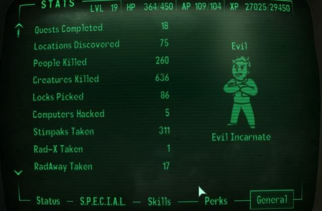 The early dozen quests didn't impress me much and pretty similar to previous Bethesda games. There should be more interesting story attached to the quests. Unfortunately as in current state, Fallout 3 doesn't has good writing/dialogue and story. I don't even see a descriptions on weapons and tons of other items that scattered around the game world.